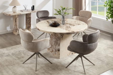 - With its rich mottled mocha tone, the Artemis Round Dining Table is a stylish centrepiece for any dining space.