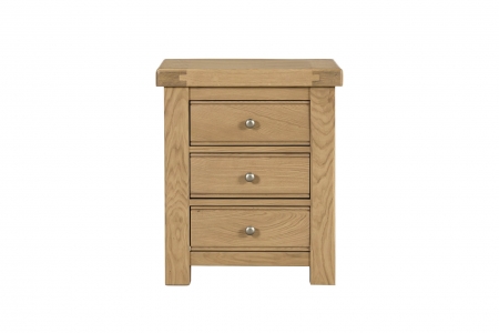 - The Delaney Bedside Table in Oak features a classic design and three spacious drawers, this table offers ample storage for your night time essentials.