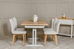 - The painted frame, coupled with the light-coloured oak top, creates a harmonious blend of style and elegance.
