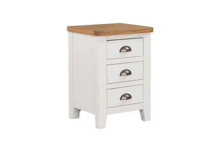 - The Mellor 3 Drawer Bedside Table in Cashmere blends elegant design with modern country charm.