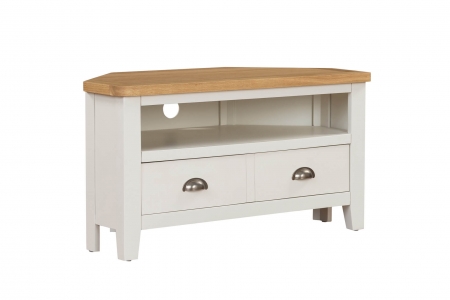- The Mellor Corner TV Unit in Cashmere brings country charm style and smart functionality to compact living spaces.