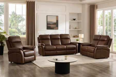 - The Nardo Suite in Brown offers timeless comfort and style, upholstered in truffle-toned leather for a luxurious look and feel.