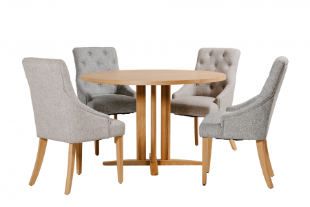 - Elevate your dining experience with the Renata Round Dining Table in Oak.